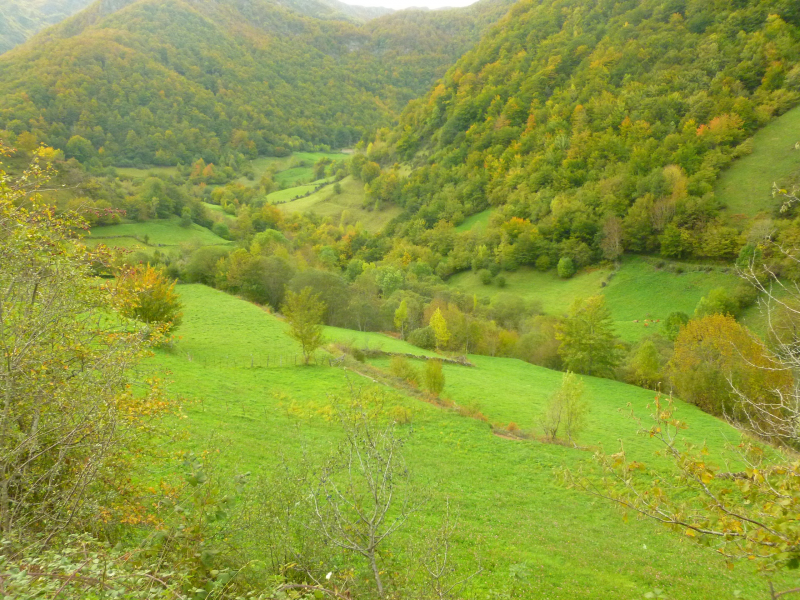 Continuamos descendiendo por la pista, con unas vistas otoñales de gran belleza, hasta alcanzar la aldea de Villar de Vildas, donde finaliza nuestra ruta, y que recibió el premio al Pueblo Ejemplar de Asturias en 2004.