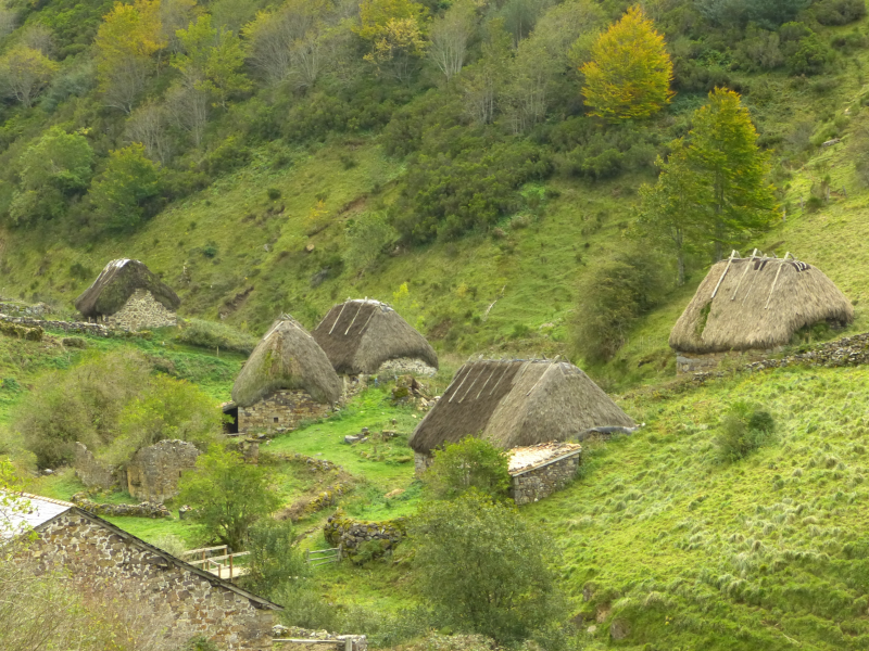 Volvemos por la pista sobre nuestros pasos y continuamos por ella sin pérdida hasta alcanzar la Braña de La Pornacal. El lugar es de una belleza espectacular, con más de 30 pallozas bien conservadas, y que nos lleva la imaginación a épocas pasadas.