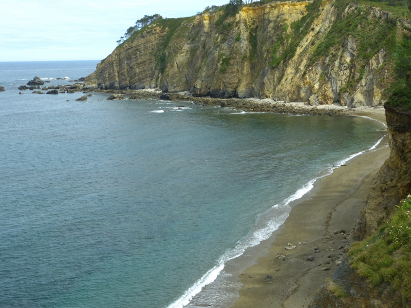 Una vez superadas las antiguas escuelas y la capilla de San Salvador, el camino lleva a la ensenada de Torbas y a la playa con el mismo nombre, muy amplia y abierta.