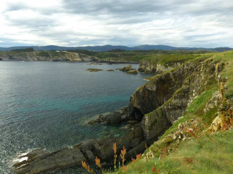 Salimos de Valdepares pasando por prados y la senda nos lleva de nuevo hacia la costa en una zona de acantilados, entre ellos, el cabo Blanco con espléndidas vistas de la costa.