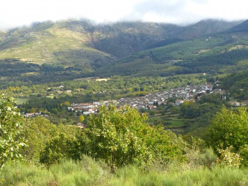 A partir de aquí, seguimos por senda, en ascenso hasta llegar a Llano Alto. Allí hay un albergue, y se divisan esplendidas vistas de la Sierra de Béjar.