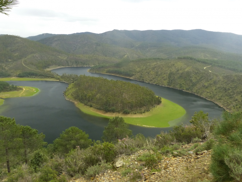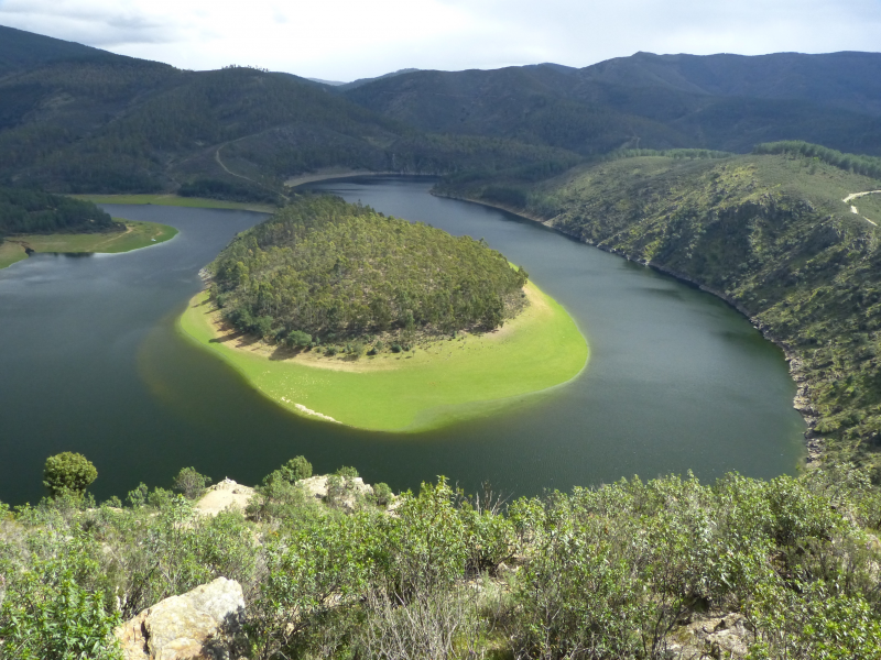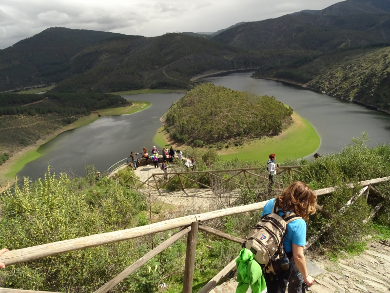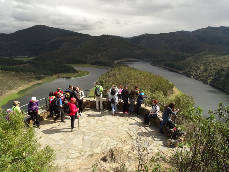 El mirador se encuentra en la provincia de Cáceres, pero la península del meandro en la de Salamanca.