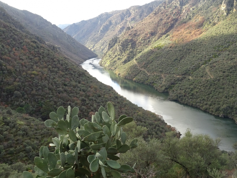 Las vistas son extraordinarias, con el río Duero abajo flanqueado, y enfrente la ribera portuguesa, con bancales de olivos. Hay zonas donde la roca baja hasta encontrarse con el agua, con paredes que llegan a los 500 m. Si nos fijamos podremos ver volar águilas, alimoches, numerosos buitres e incluso cigüeñas negras.