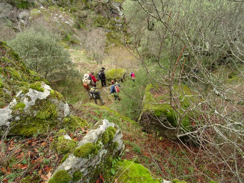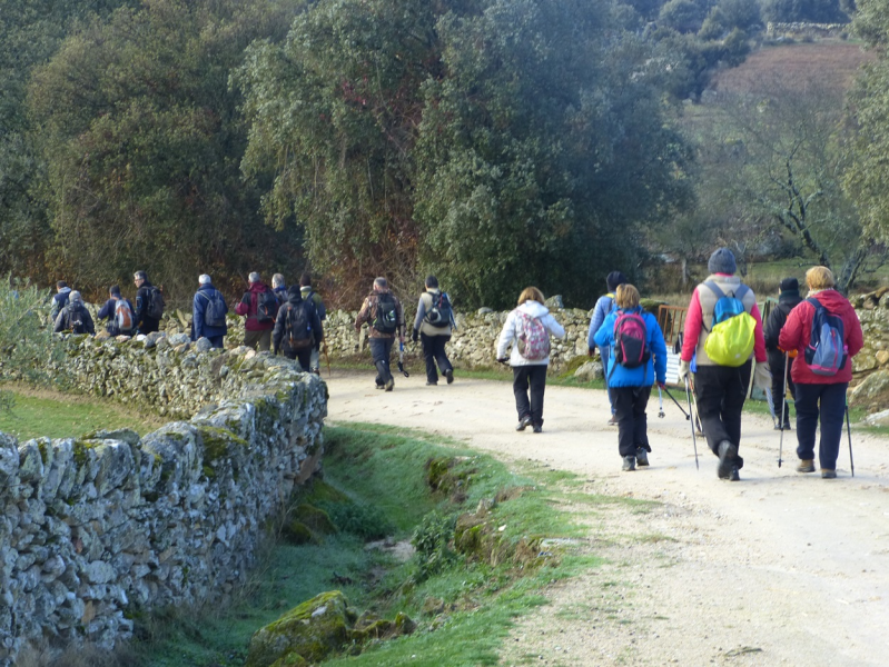 Caminamos por caminos forestales entre campos de almendros, cerezos, algunos de encinas, todos separados por cuidados muros de piedra.