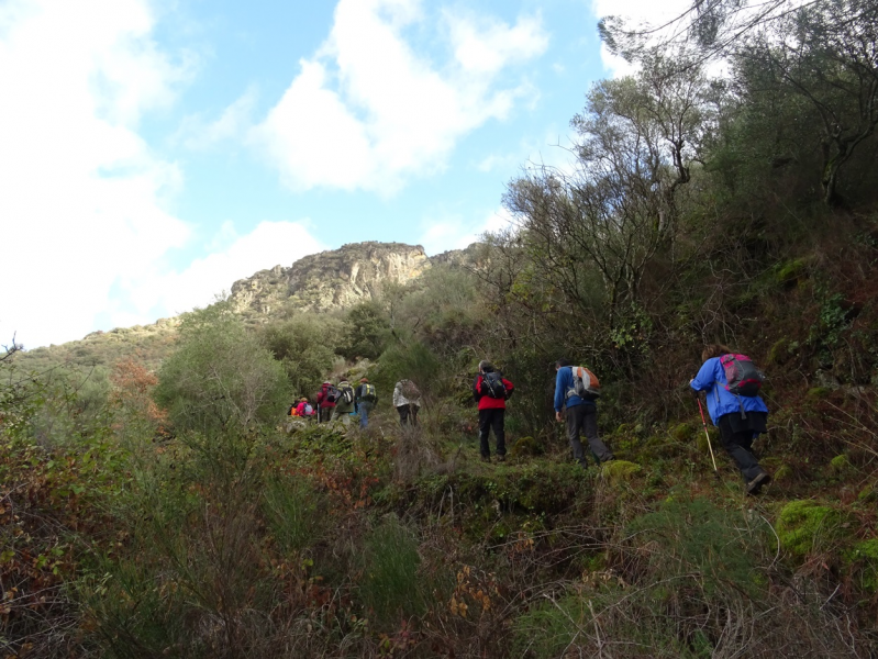 Un poco antes de llegar al mirador a nuestra derecha veremos un sendero no muy definido, será por donde caminaremos. En esta parte del recorrido tendremos que estar muy atentos, pues el sendero no está muy definido y algunos tramos con abundante maleza.