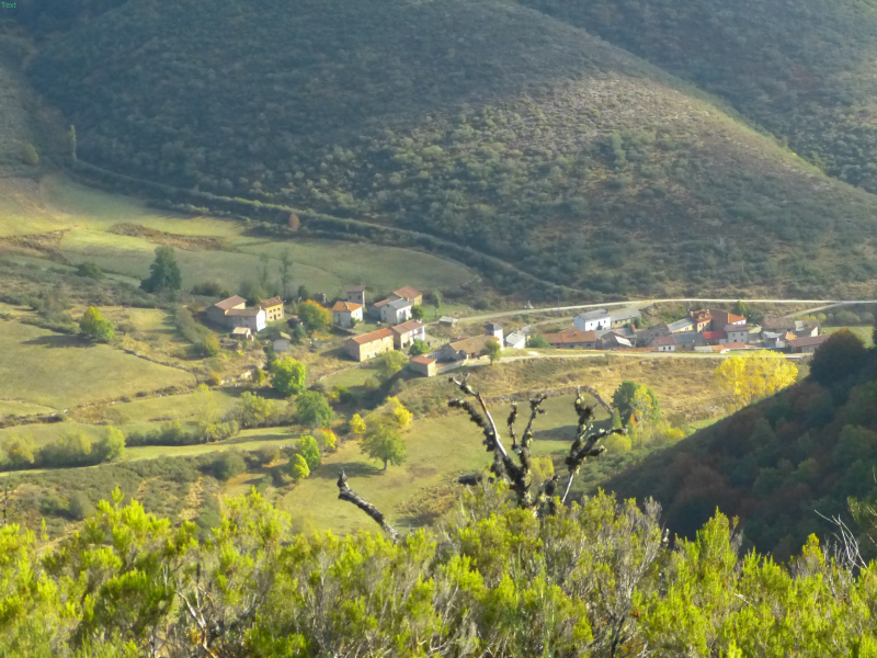 Pasamos junto a una torre-vigía de madera y al final de la pradera divisamos, en el fondo del valle, el pueblo de Retuerto.