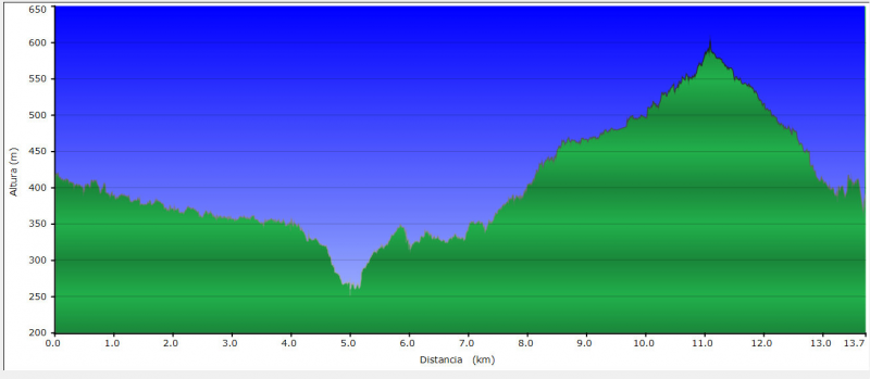 Estaremos en la cota más baja de la ruta (260 mt.) y llevaremos 5,5 Km. aprox.