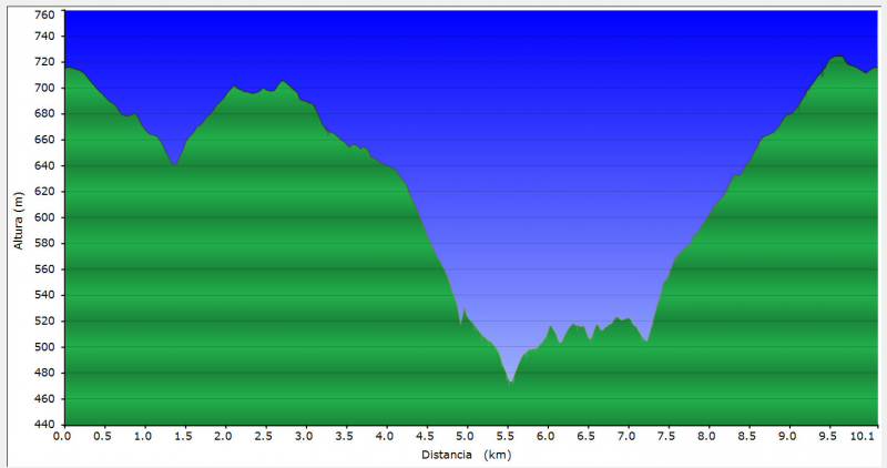 El principio de dicha ruta es por pista en suave descenso, hasta llegar tras 1,5 km. aprox. a un pequeño refugio, donde se puede hacer la ruta circular volviendo al refugio.