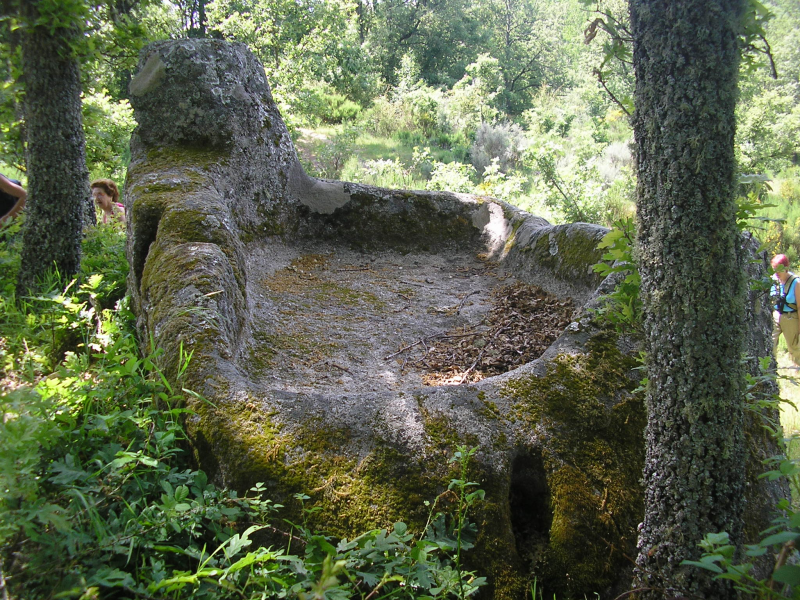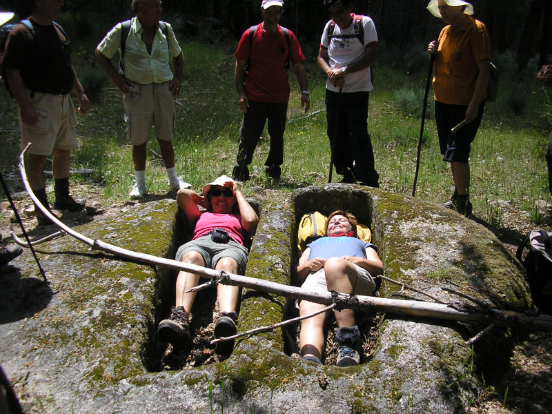 Tras un 2/3 Km. Por la pista, llegamos junto a un pinar a nuestra izquierda. Allí nos desviaremos unos doscientos metros para llegar a un lugar donde la imaginación nos puede trasladar a tiempos inmemoriales. Encontraremos varias tumbas y lagares, excavados en granito, lo que nos hace pensar que allí hubo un antiguo poblado visigodo.