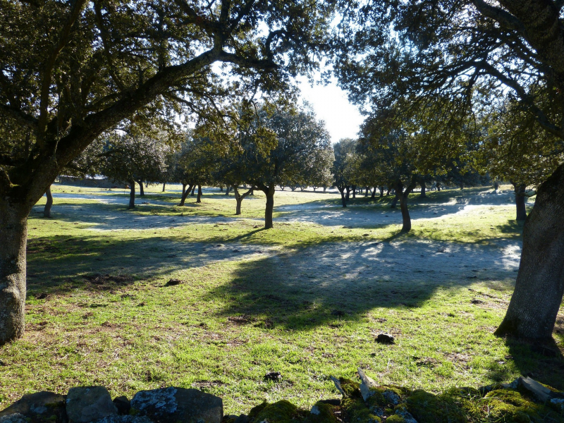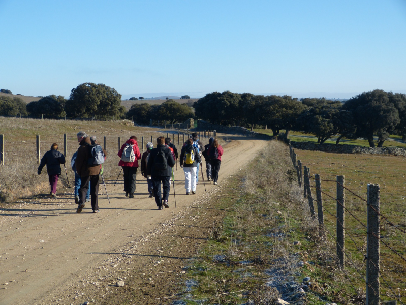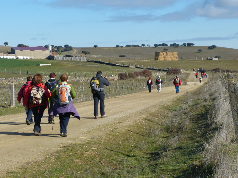 En este tramo el número de encinas se multiplica. Tras otro paseo de 1,3 kms, estaremos ante otra bifurcación que nos aparece a la izquierda. Tomaremos el camino de la derecha, siempre indicado por las marcas de continuidad roja y blanca y presentes durante todo el recorrido y a las que seguiremos durante 1 km más hasta encontrarnos con la misma carretera que tiempo atrás habíamos dejado. Es la DSA-136, que casi, salvará el último tramo hasta Montejo. Giraremos a la derecha por esta carretera para poder divisar a apenas unos metros nuestro destino. Avanzaremos por esta carretera para volver a salirnos de ella a tan solo 600 metros a la derecha. Una pista agrícola nos guiará por el GR 189 para acceder a Montejo por el este. A 700 metros de este punto volveremos a girar a la izquierda por entre las encinas en una pista visiblemente ensanchada.