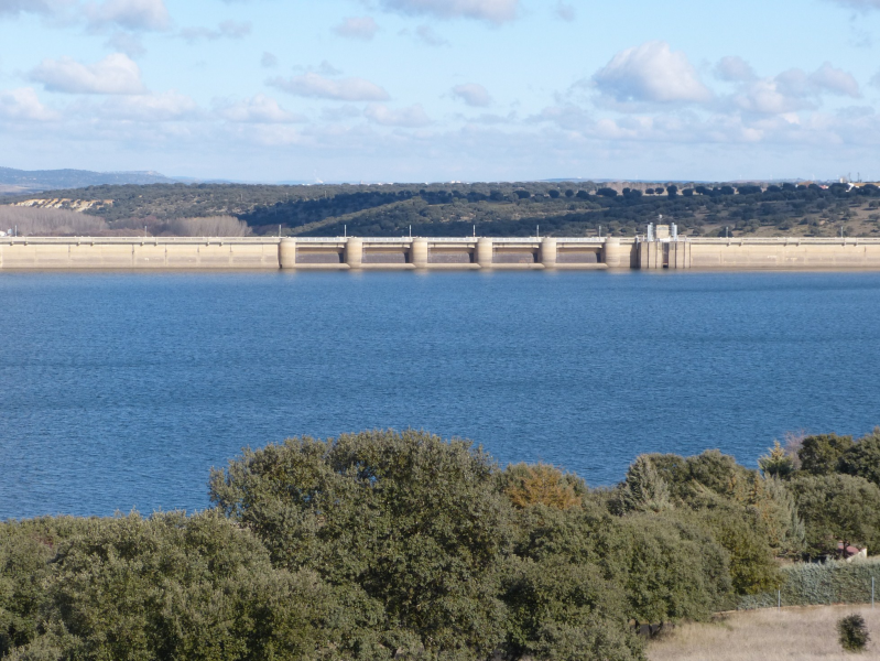 A la derecha obtendremos una vista inmejorable del pantano y seguidamente pasaremos por un lugar llamada El Mirador del Santa. A 700 metros de este punto, tomaremos en el cruce la dirección de la derecha para pasar sobre un puente de una de las paredes laterales de la presa. Es un carril muy estrecho y asfaltado.