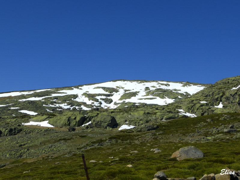 En llegar hasta donde desaparece la pista se pueden tardar unos cincuenta minutos desde el puerto, y allí se debe buscar algún punto por donde cruzar la pared y tomar las veredas que la siguen por el otro lado. A la derecha, en la cuerda, hay algunos peñascos (Peña de Garci Sánchez y Peñas Negrillas) que no debéis confundir con vuestro objetivo.